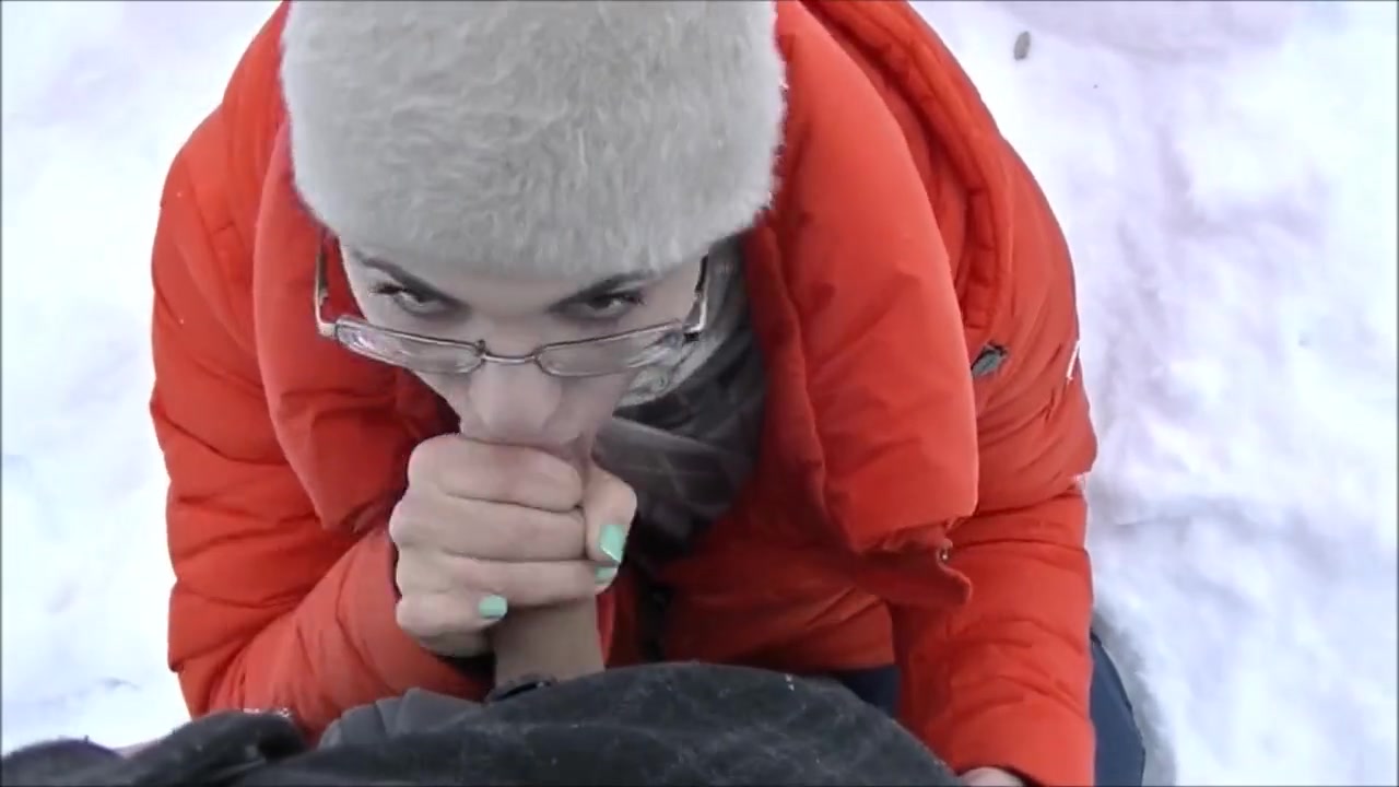 Очкастая красотка со своим бойфрендом зимой решила выбраться на природу и влюбленная парочка отправилась в красивый заснеженный лес. Впечатлительная телка так сильно завелась, что не побоявшись мороза, предложила сделать другу прямо на улице домашний минет от первого лица. Присев на корточки, заведенная куколка достала пистон чувака и круто отсосала, сумев довести партнера до семяизвержения.
